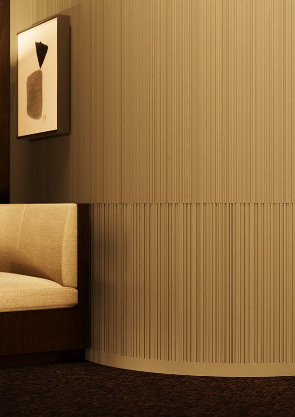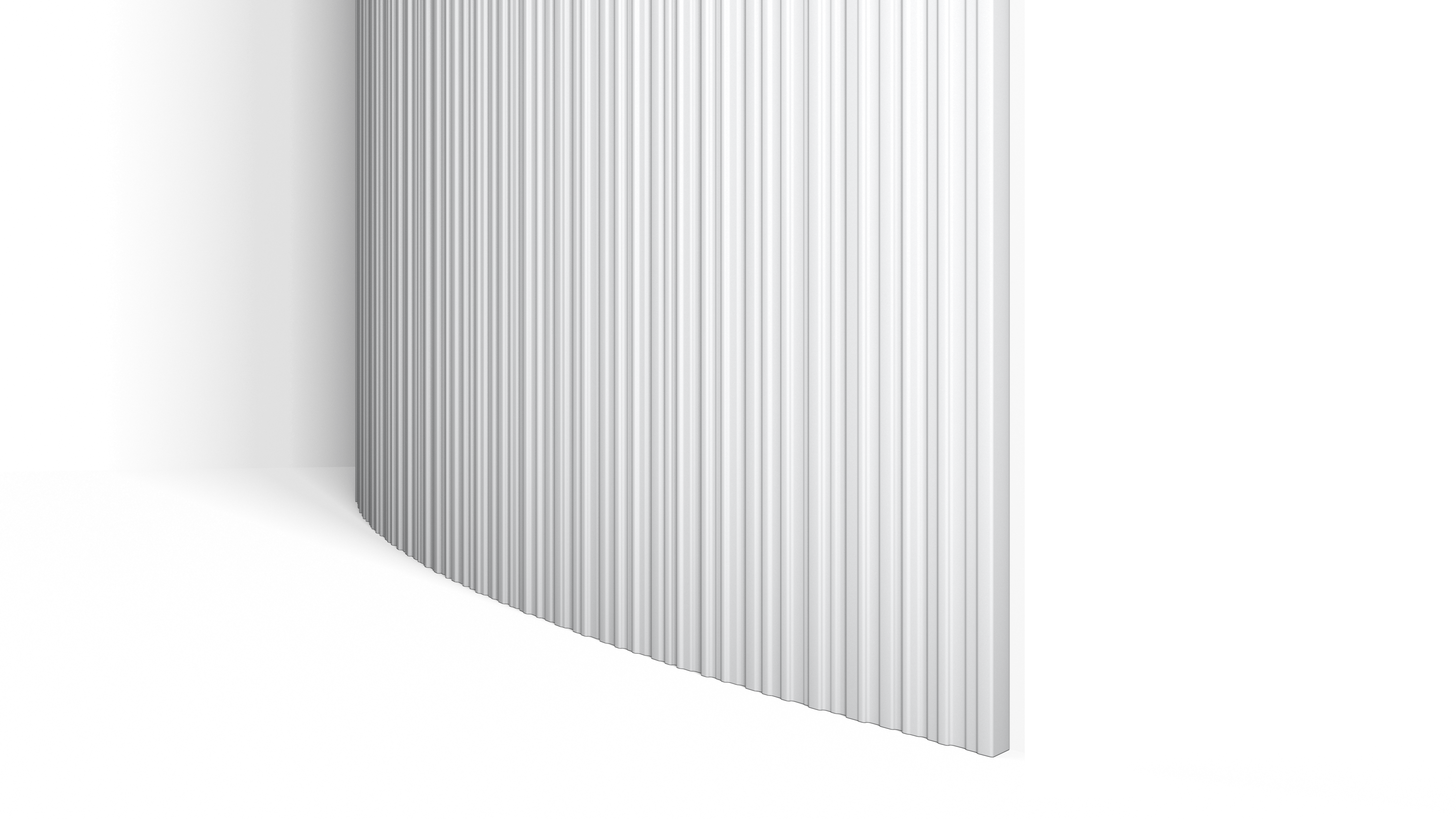 ALLEGRETTINO FLEX brings the dynamic rhythm of the ALLEGRETTINO design to curved surfaces such as rounded walls, ceilings, or columns. With its frequent repetition of a linear, asymmetrical motif, the ALLEGRETTINO FLEX wall panel creates a softly structured, subtle and refined surface that enhances the architectural character of any interior. The design, created by Belgian product designer Bertrand Lejoly, plays with light and shadow to add depth and movement to even the most irregular surfaces. The ideal solution for achieving strong, three-dimensional décors on both flat and curved applications.