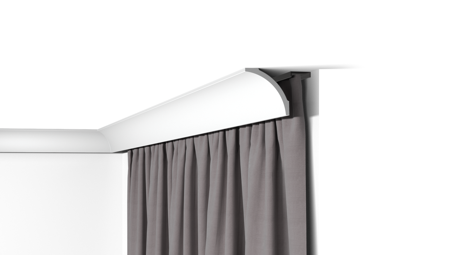 Intégrez une moulure de plafond lisse et arrondie dans un intérieur pour une finition sobre. Une moulure de plafond incurvée, comme la B8 NOMASTYL®, crée une transition harmonieuse entre le mur et le plafond et ajoute de l'intérêt à la forme d'une pièce. Le polystyrène résiste à l'humidité et convient donc parfaitement aux salles de bains, aux cuisines et aux bars.