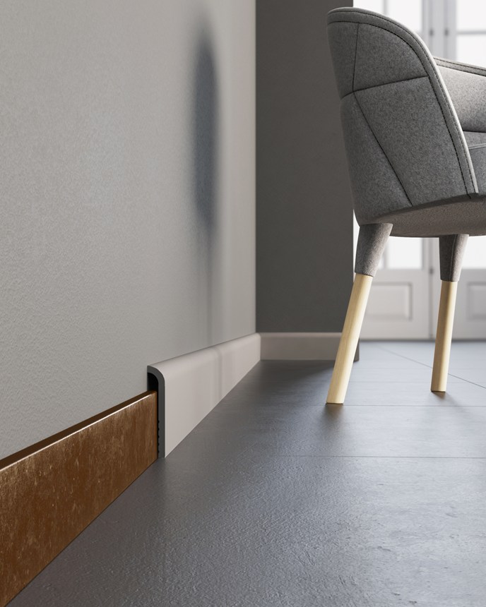 Jouez avec élégance et sobriété en introduisant la forme arrondie de la CF1 WALLSTYL® dans un intérieur. Esthétiquement, la surplinthe CF1 WALLSTYL® offre une transition harmonieuse entre le mur et le sol. Sur le plan pratique, les surplinthes offrent une protection contre les effets d’un train de vie bien rempli.