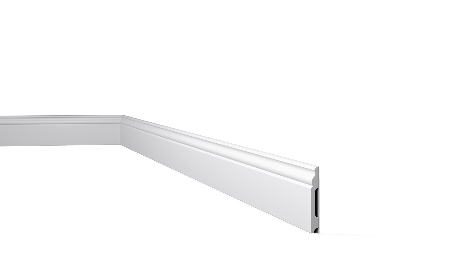 La plinthe FB2F WALLSTYL® est prête à être installée. Les moulures sont peintes en blanc en couleur RAL 9016. À la fois visuellement attrayante et fonctionnelle, la plinthe FB2F WALLSTYL® sert de protection dans des espaces de passage comme les maisons et les bars.
