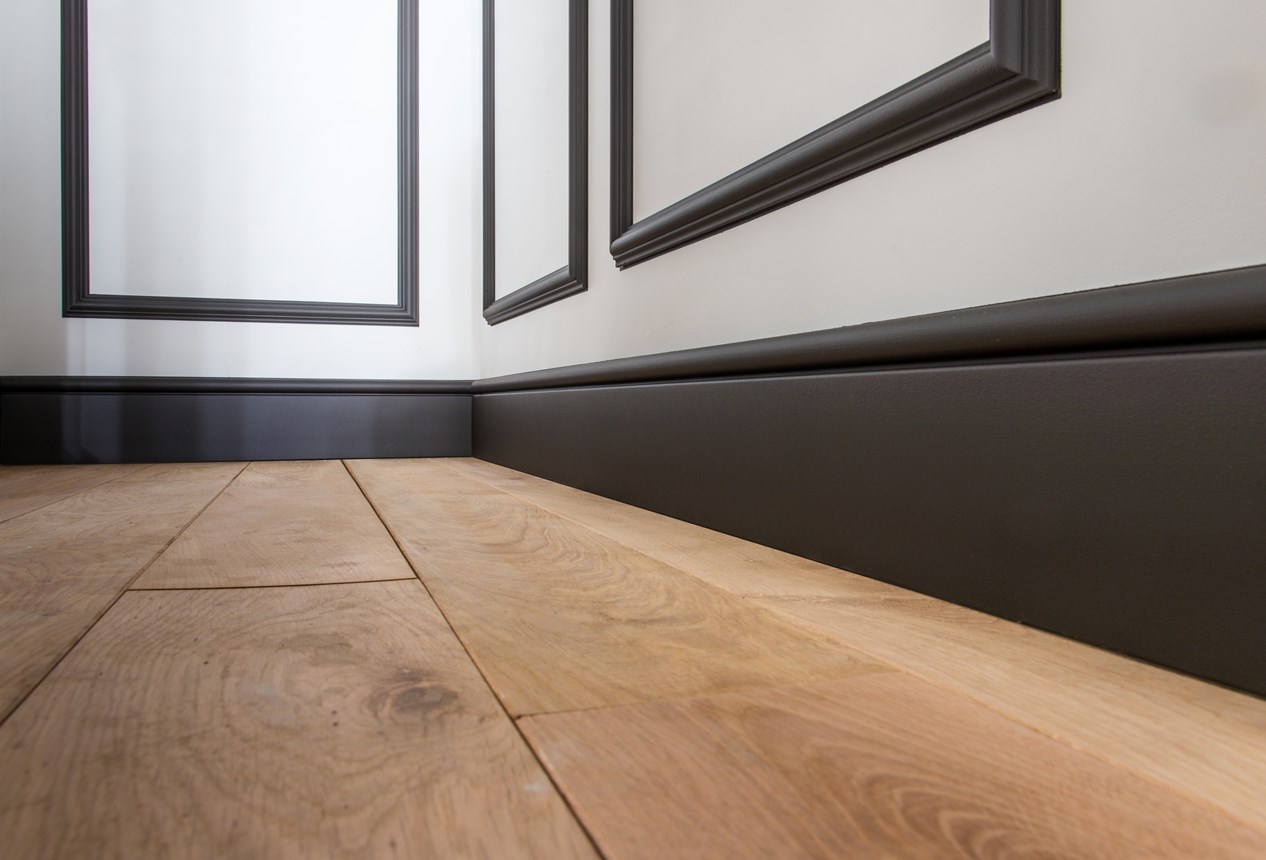 Les FL4 sont prêtes à peindre grâce à une couche de primaire appliquée en usine. Un petit espace est prévu à l’arrière de la plinthe pour dissimuler des câbles ou des imperfections. Le matériau résistant à l’humidité convient parfaitement aux espaces humides comme les bars, les cuisines et les salle de bains.