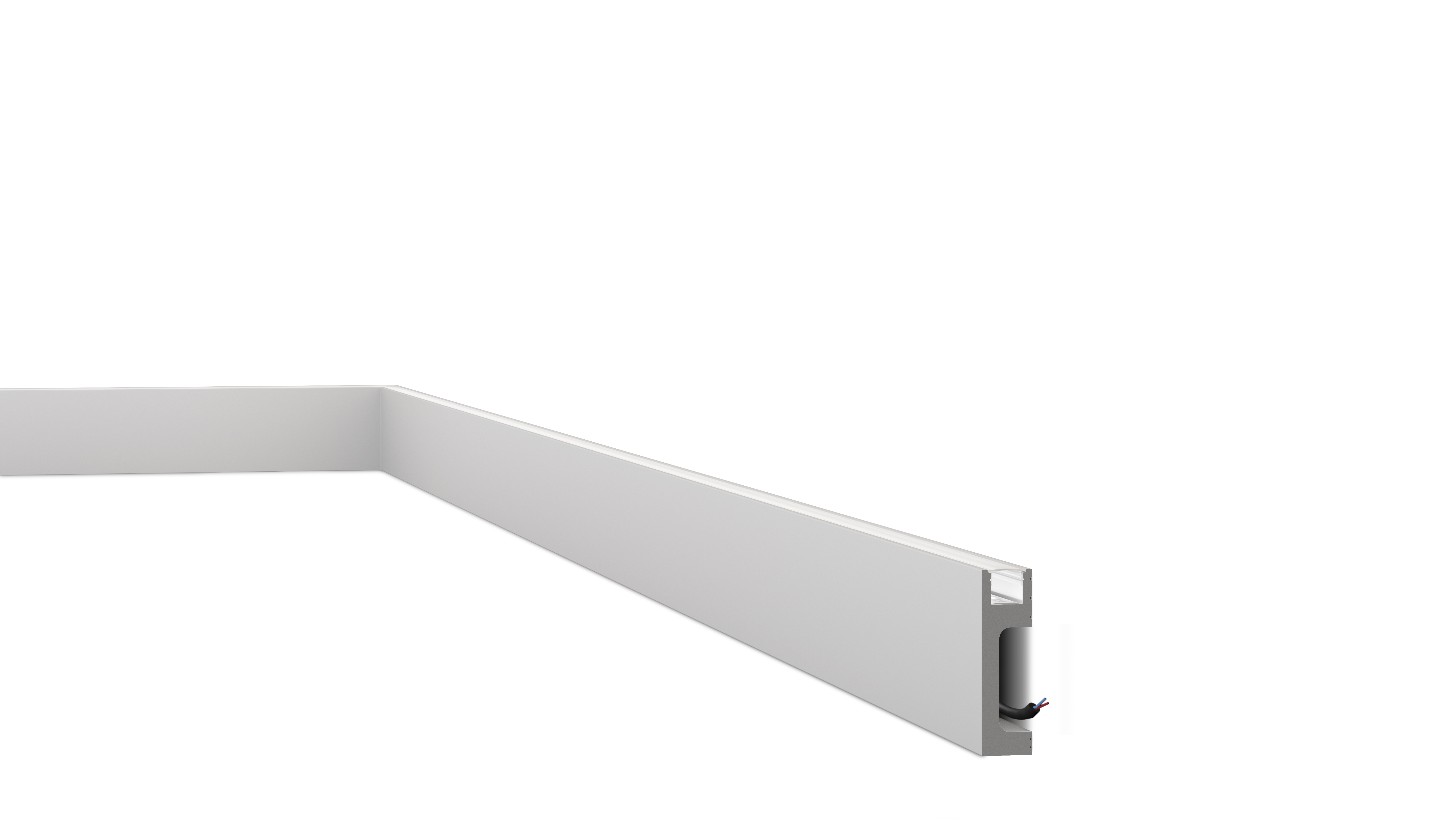 Pour combiner la plinthe IL10 avec un éclairage LED indirect, enfoncez les bandes LED dans la rainure prévue dans la plinthe. Un petit espace est également prévu à l’arrière de la plinthe pour dissimuler les câbles. La plinthe permet aussi de cacher des fissures et des transitions disgracieuses. La IL10 est pré-peinte en usine avec une couche de primaire et est prête à peindre. Un matériau résistant à l’humidité fait de la IL10 une source d’éclairage et une plinthe parfaite pour les espaces humides comme les salles de bains, les spas et les bars.