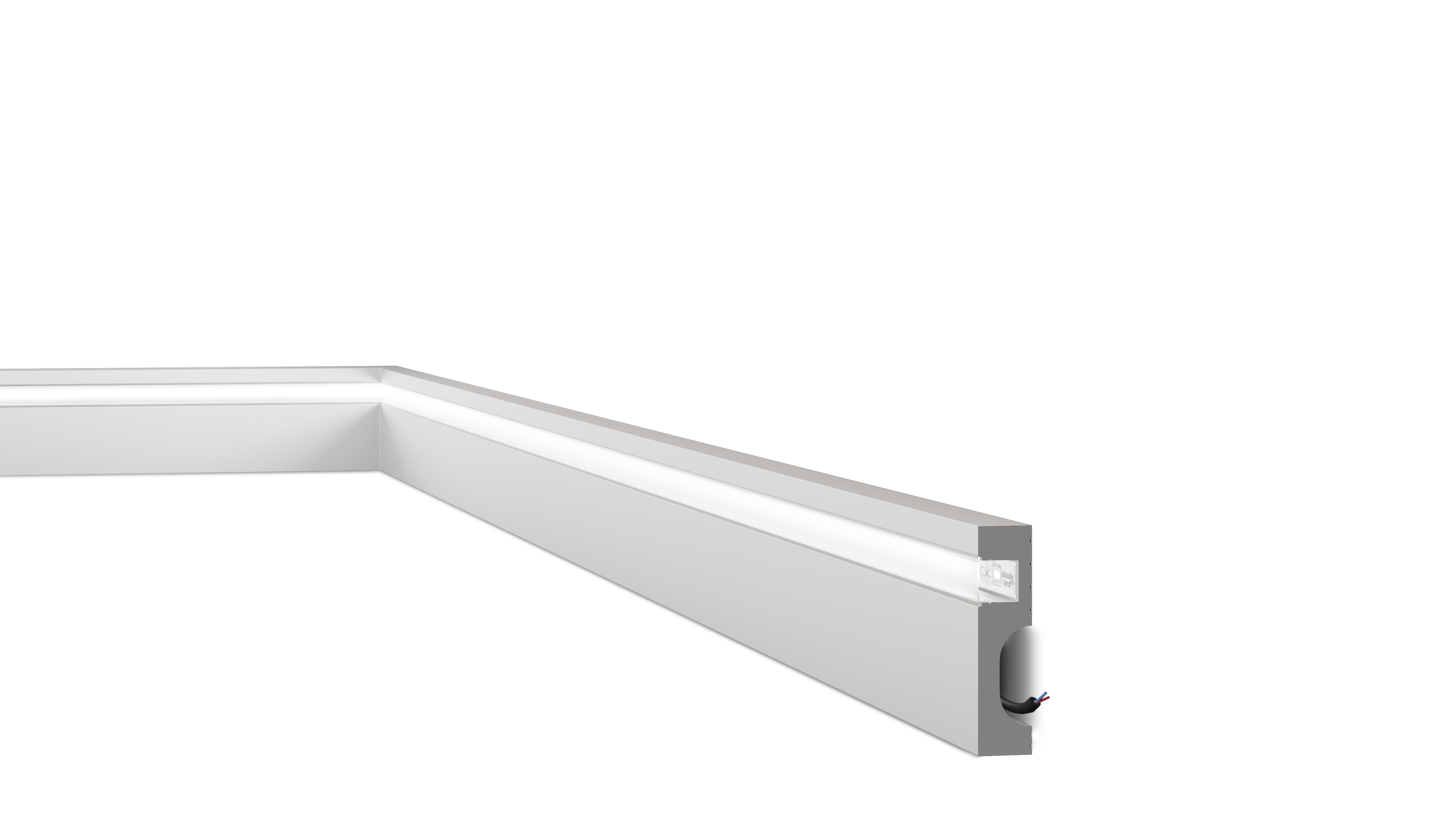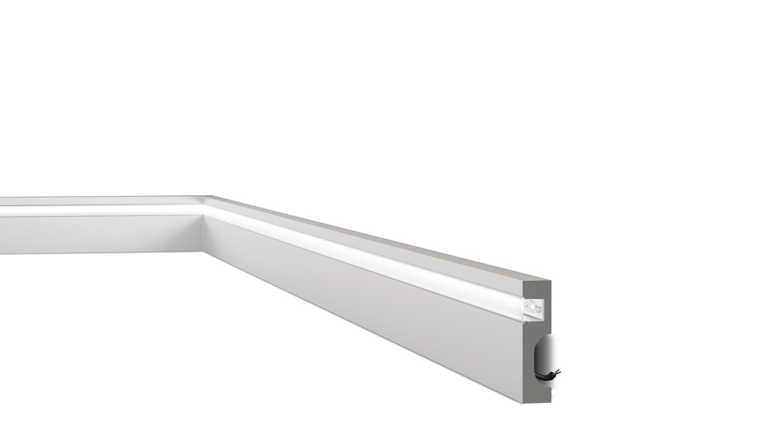 L’éclairage LED indirect réduit également les coûts d’électricité et la nécessité d’un entretien à long terme. Une rainure est prévue pour installer les bandes LED et faciliter la pose de l’éclairage LED dans la plinthe IL11. La IL11 est pré-peinte en usine avec une couche de primaire et est prête à peindre. Le matériau résistant à l’humidité fait de la IL11 la source d’éclairage parfaite dans les salles de bains ou les bars modernes.