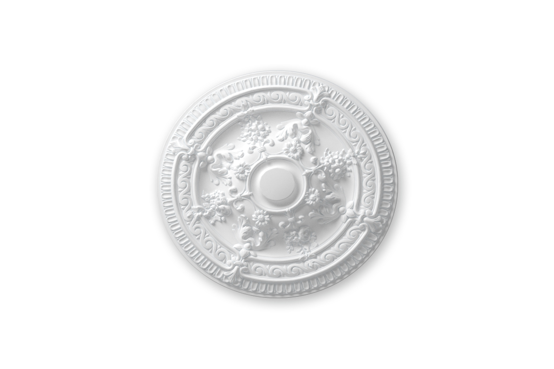 La rosace R11 ARSTYL® est ornée d'un motif floral qui met en valeur un intérieur traditionel. Personnalisez un espace en installant la R11 dans de nombreuses configurations. Utilisez la R11 comme élément distinct ou dans le cadre de créations originales sur le mur ou le plafond. La forme de la R11 ARSTYL® en fait une base d'éclairage idéale pour les lustres ou autres luminaires.